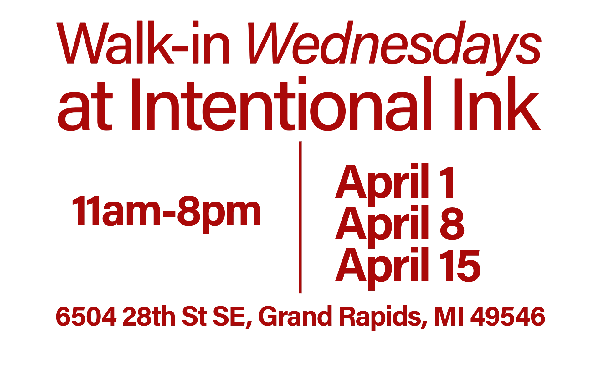 Give us a call about scheduling a same day appointment! We are an appointment-only studio; appointments can also be booked online or by contacting artists directly.